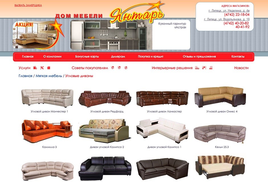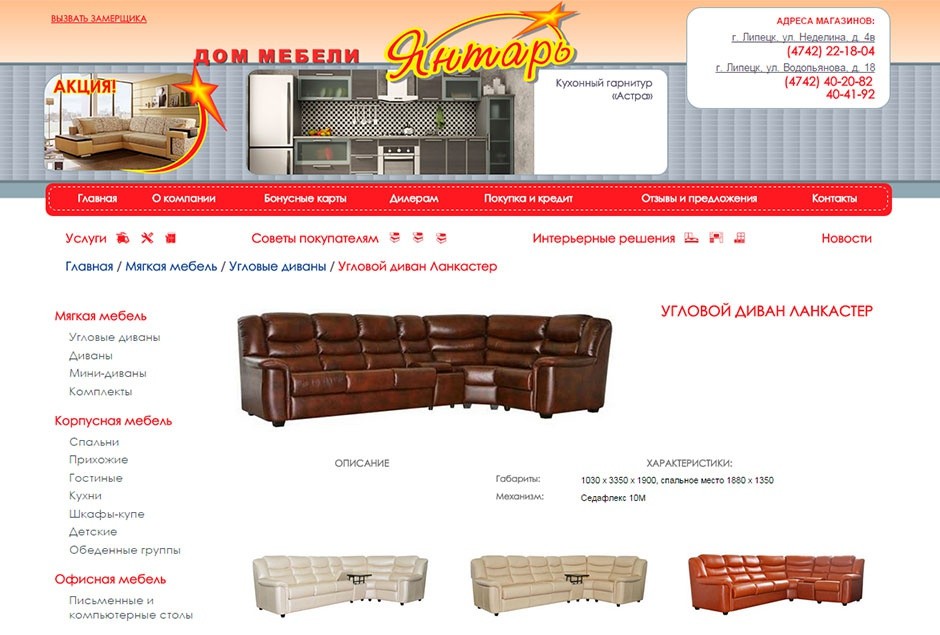 yantar48.ruСеть магазинов мебели «Янтарь» предлагает широкий ассортимент мебели лидеров мирового производства. Интерьерное оборудование для участков жилого и общественного типа. Сотни товаров для гостиной, кухни, спальни и других помещений. Вся мебель изготовлена из первых сортов древесных пород и прочной фурнитуры. Компания предоставляет дополнительные услуги сборки мебели на объекте и бесплатную доставку заказа по городу. В карточках товара детально описаны характеристики, мебели, габариты и принадлежность к коллекции. Качественная мебель – залог комфорта и уюта в доме, поэтому к столь важному выбору стоит подходить со всей ответственность, убедившись, что мебель идеально подойдет для используемой площади пространства и дизайнерскому оформлению интерьера.
